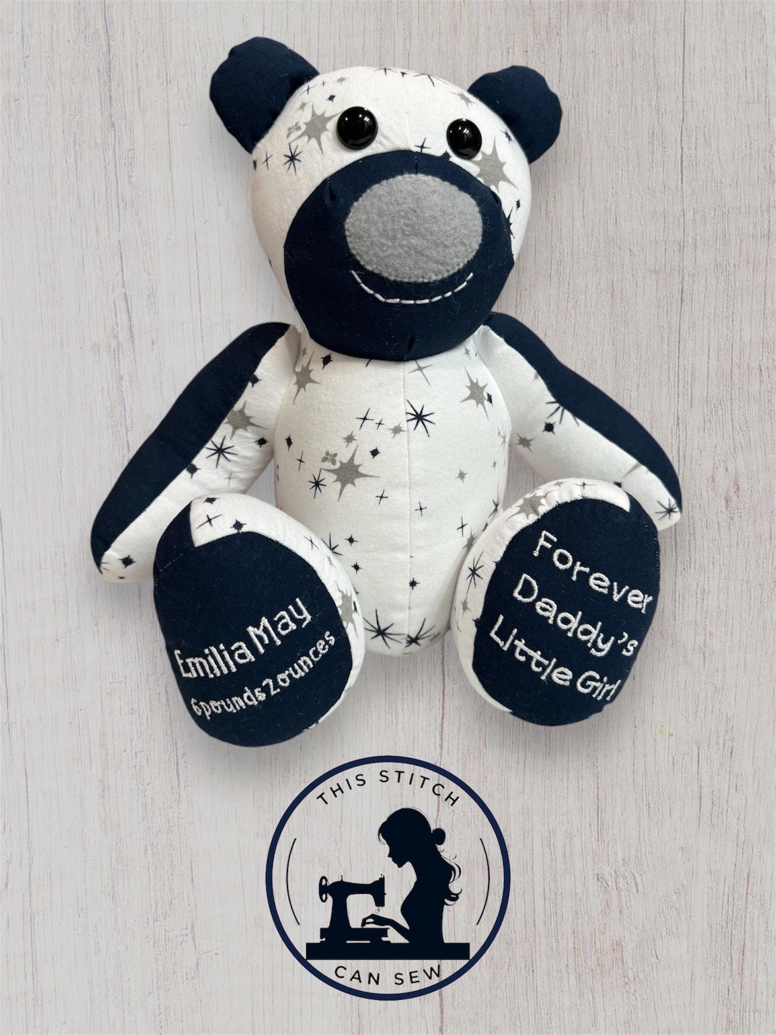Turn cherished clothing into a tangible memory with a custom keepsake memory bear. Using a baby outfit, blanket, or a loved one’s clothing, each bear is handmade with care to create a one-of-a-kind sentimental keepsake that preserves memories for years to come.