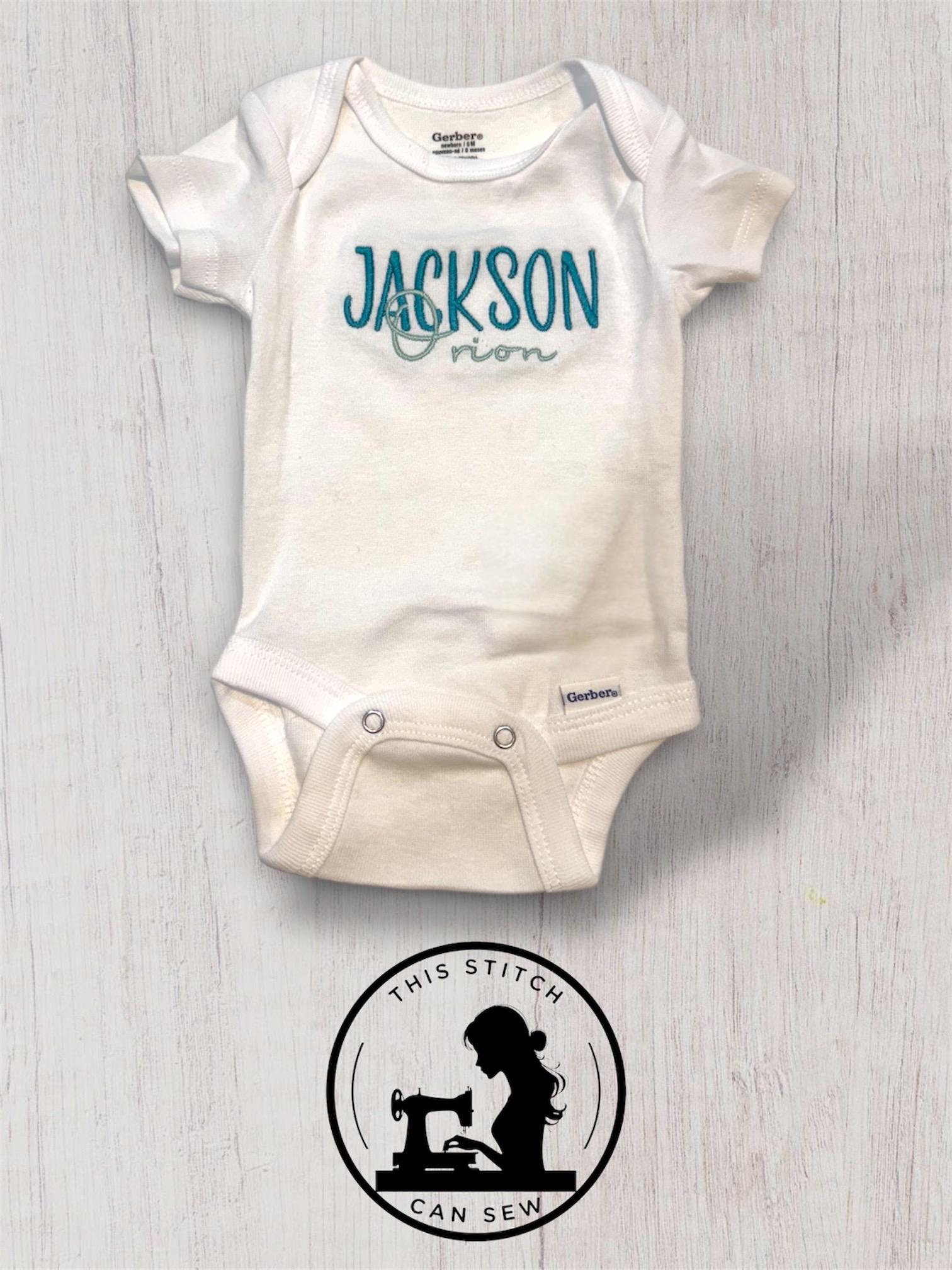 Celebrate your little one with a sweet, personalized, embroidered baby bodysuit featuring their first and middle name! This custom piece makes the perfect keepsake for newborn photos, baby announcements, shower gifts, or everyday wear with a personal touch.
